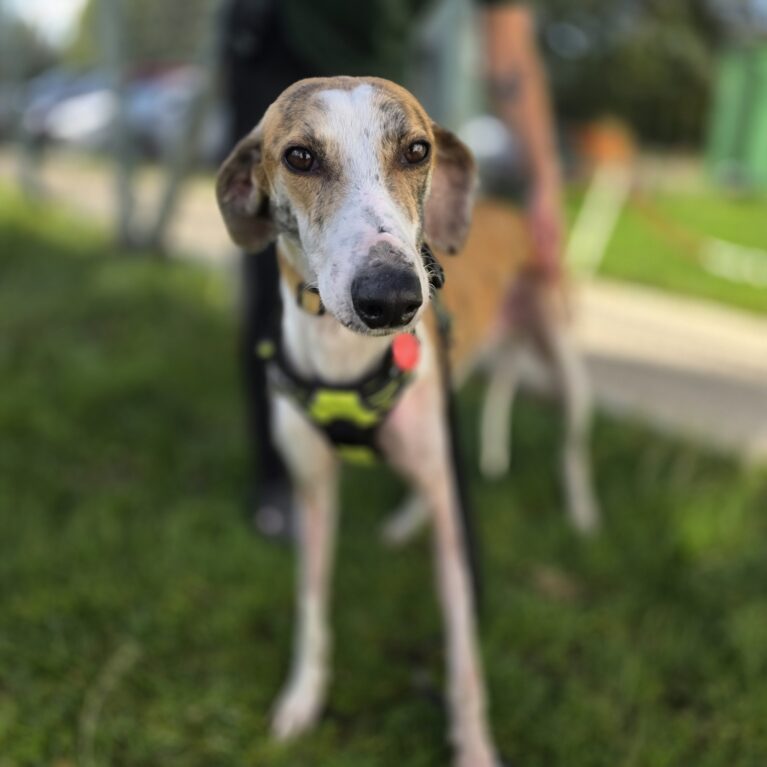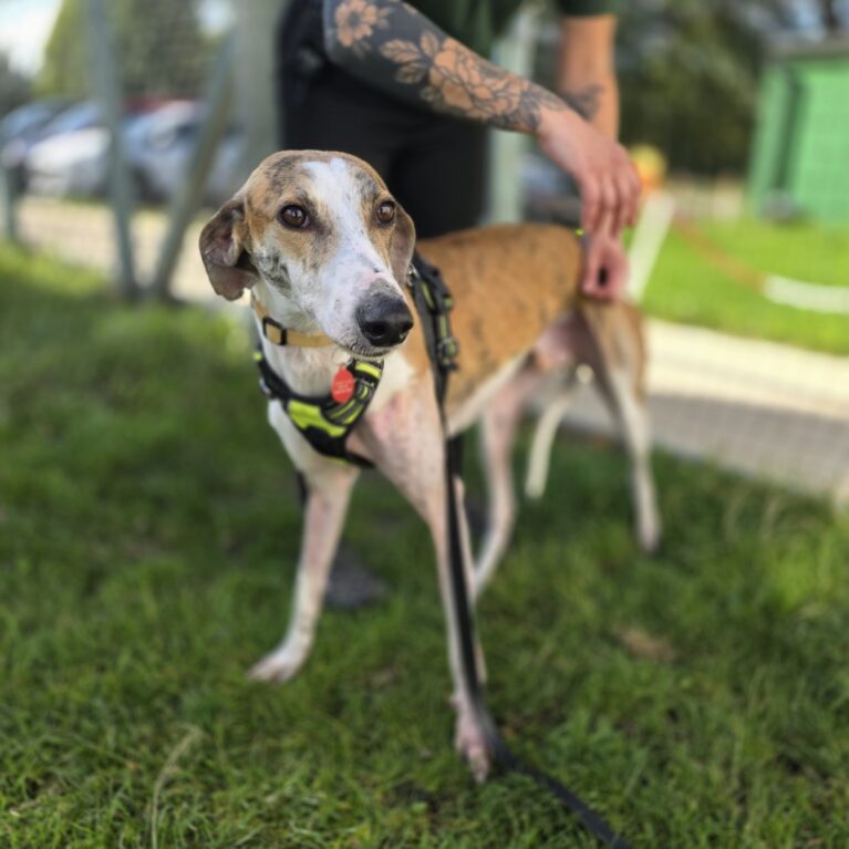I’m a 2-year-old lurcher, tall, handsome, and very good at giving cuddles. In fact, if there’s a comfy sofa or a big soft bed waiting for me, I’ll be the happiest boy in the world!