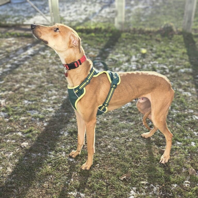 I’m a gorgeous 1-year-old Lurcher with a gentle, friendly nature and some lovely manners to match. I’m a real pleasure to take out on walks – something I absolutely love – and I walk very nicely, making our adventures together calm and enjoyable.