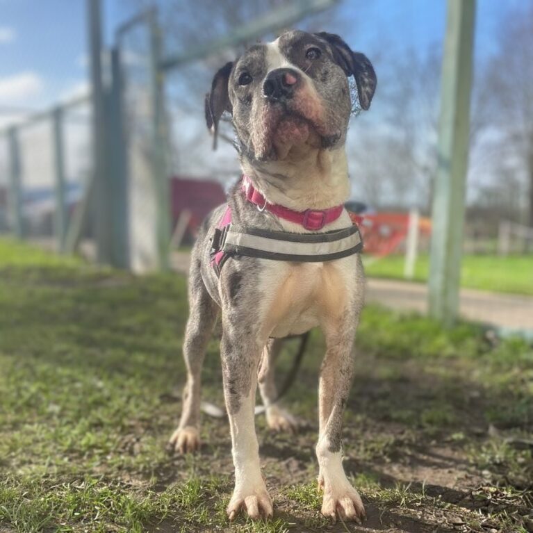 Meet Olive, our beautiful 2-year-old American Bulldog cross with a heart as big as her smile