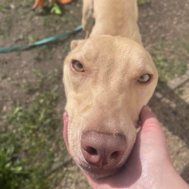 Omari is a truly special boy with a story written in both his gentle eyes and the scars he carries. At just 2 years old, this beautiful lurcher—believed to be a Pharaoh Hound mix—embodies grace, resilience, and quiet strength. His name, meaning “high born” in ancient Egypt, suits him perfectly; there’s something undeniably noble about Omari.