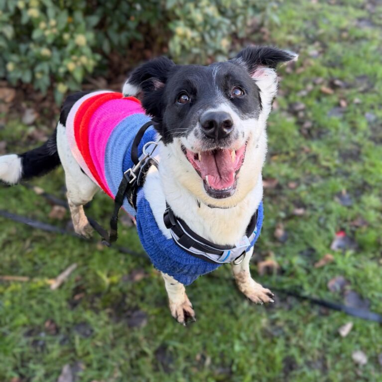 I’m an almost three-year-old Collie cross with a big heart and an even bigger love for people. Making new human friends is one of my favourite things – I’m super friendly and always happy to say hello!