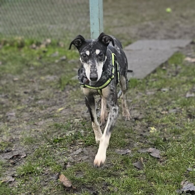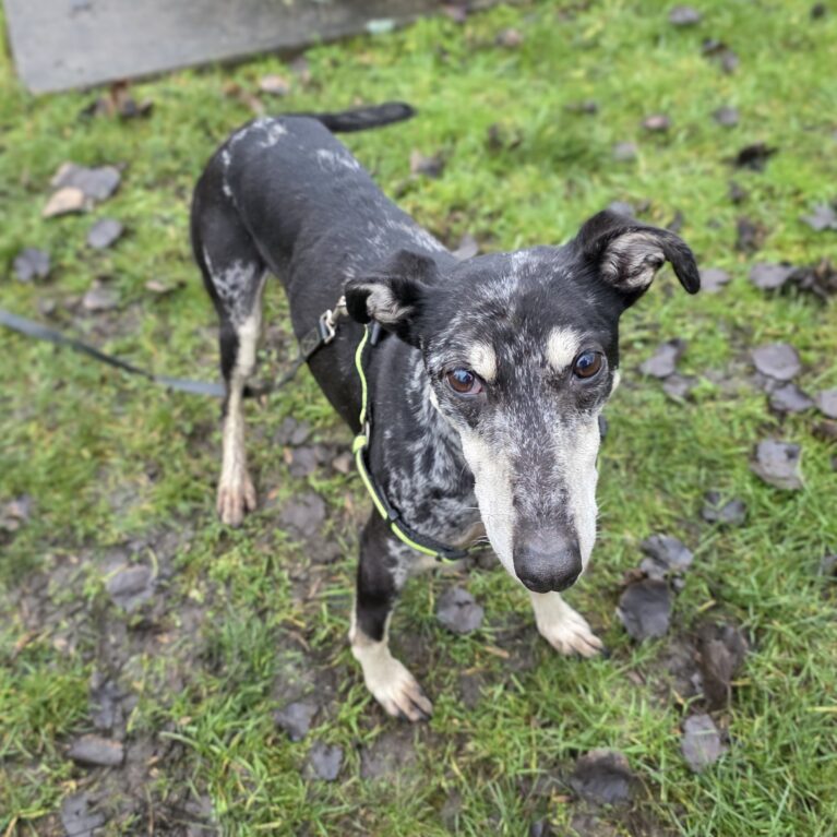Penny is a beautiful 4-year-old lurcher with a gentle soul and a heart full of love. She is a very sweet girl who enjoys getting out for her walks and walks beautifully on her lead, making her a lovely companion for relaxed strolls and longer adventures alike.