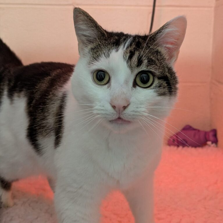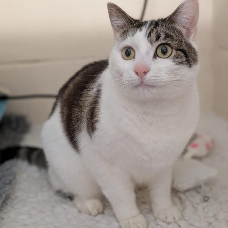 Snowy is a lovely, gentle cat. He is an easy cat to care for and could suit a first time cat owner or an experienced one. Snowy could possibly live with another quiet cat. Like most cats he doesn’t like loud noises. He is looking for a quiet home with a regular routine. He enjoys attention, likes to play and loves his grub. Snowy is neutered, vaccinated and microchiped and waiting at Durham Dogs and Cats Home for his furever hooman.