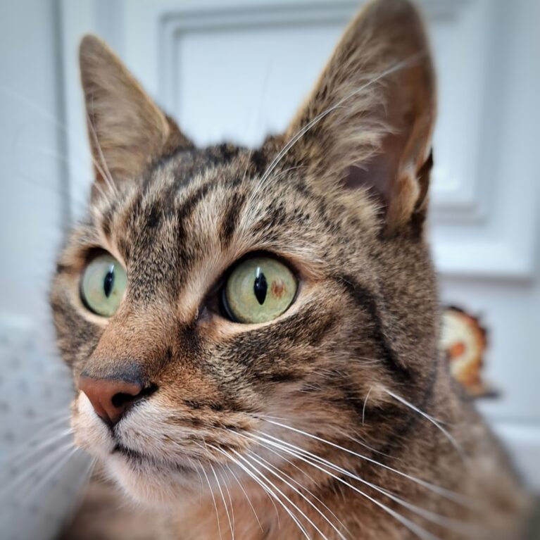 At just short of 9 years old (you wouldn’t think so with his energy sometimes), Thumper is a great starter cat for anyone owning a cat for the first time or someone who’s after a very easy to care for cat. He will happily use a covered tray, tidies up after himself and enjoys his biscuits. He has an amazing coat pattern on his back which makes him unique.