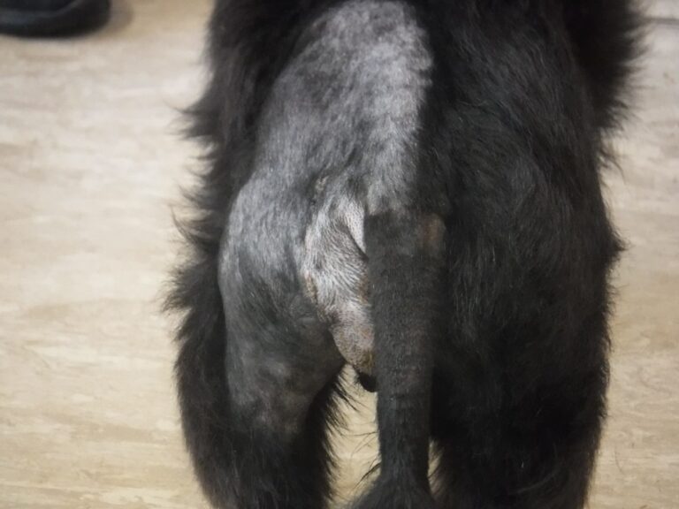 The most common symptoms of a perineal hernia are swelling at the rear, constipation and straining to pass faeces. Other symptoms are painful defaecation, faecal incontinence, straining to pass urine, altered position of the tail. Ozzy’s only symptom was the swelling, but it is important that you keep a close eye on your own pet’s health and contact your vet if you notice any discomfort or changes in behaviour.